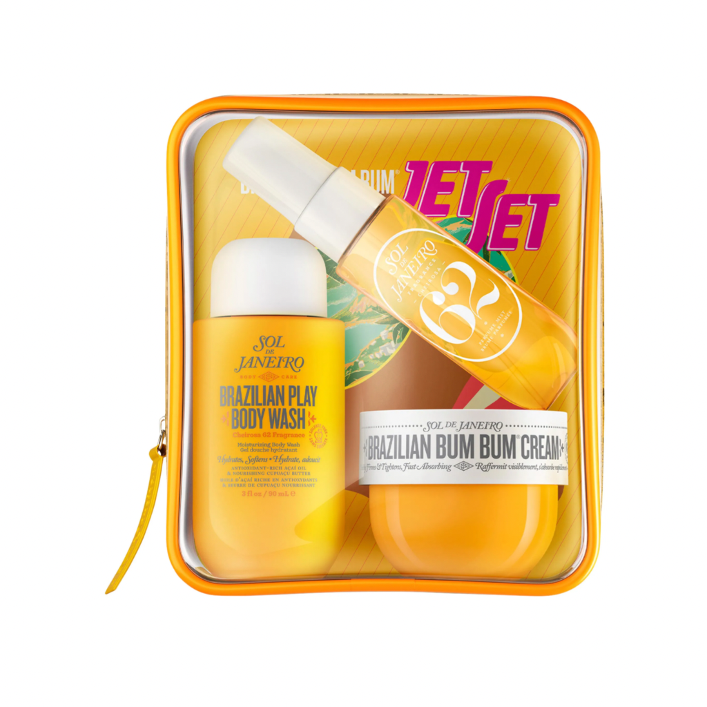 Qué es: Una colección lista para viajar que cuida tu cuerpo y que está lista para volar con un trío de los productos más queridos en el aroma de culto Brazilian Bum Bum Cream Cheirosa '62.